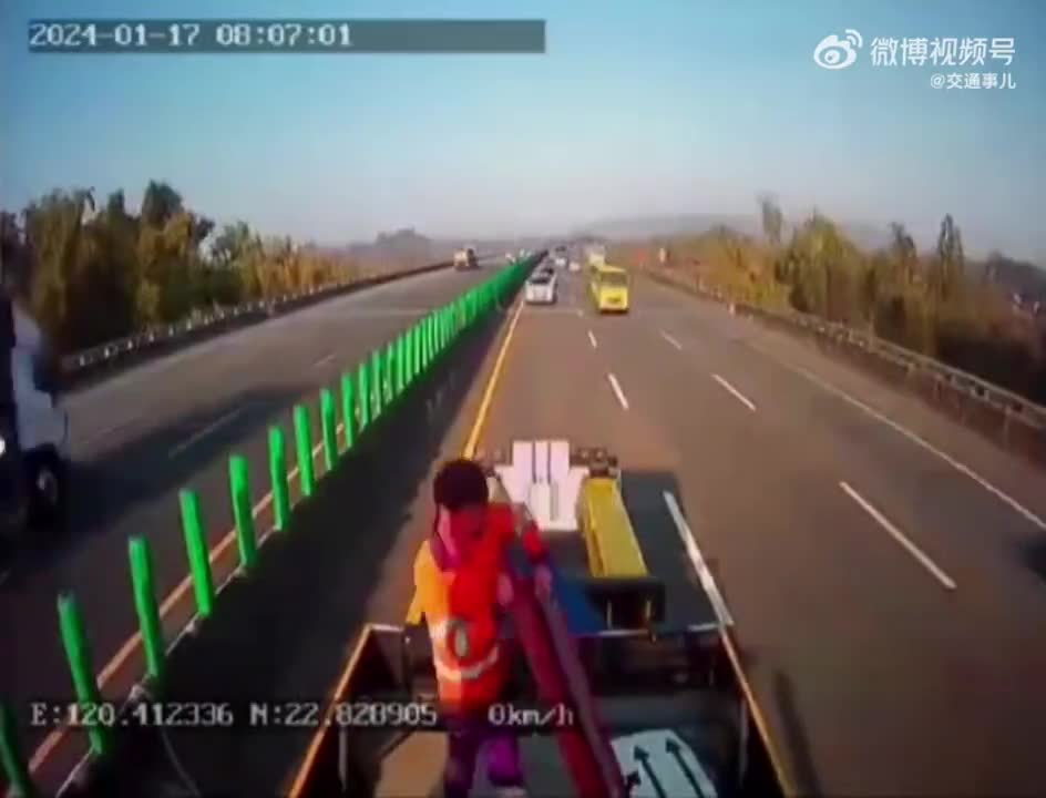 Two Speeding Cars Crashed Into Roadwork Truck In The Speeding Lane,Taiwan