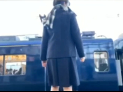 Japanese schoolgirl jumps onto the tracks.