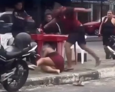 Cross-dressing man cowardly attacks effeminate man from behind, but is quickly knocked out.